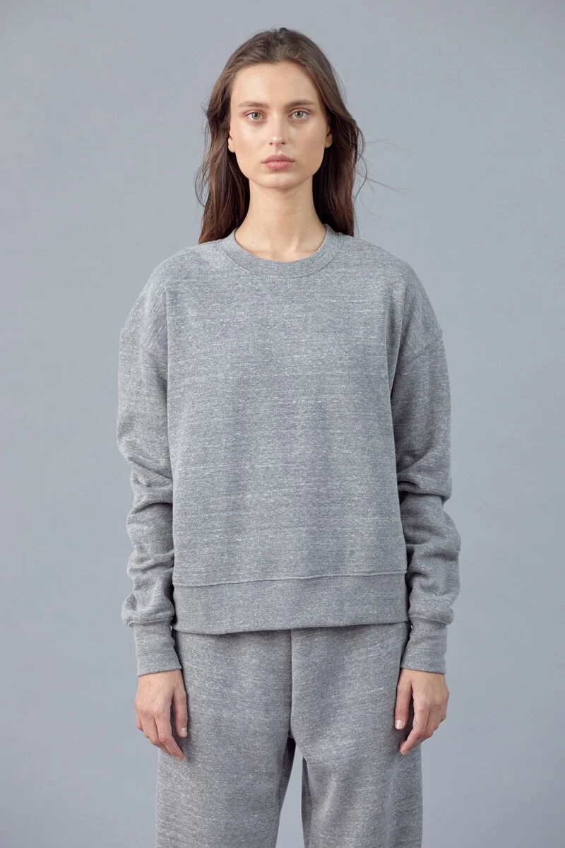 Meet Sara’s twin sister, Sara Marie. Cut with the same pattern and made with a fabric knit, this sweatshirt is made with heather gray fabric for a sturdier feel, keeping the same comfort level as her sister.